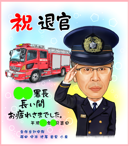 消防士さんの似顔絵。退職の記念に色紙でプレゼント|岐阜県・真也さんから作成依頼