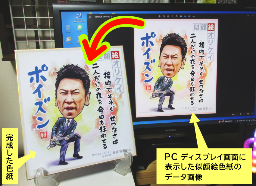 『 アナログ描き ( 紙に直接描く ) を、デジタル描きで 超える!! 』 ・・・ 実際の ラミネート加工・似顔絵色紙を受け取った方々は その綺麗さ! 仕上がりの良さに 感激しますよ~!!